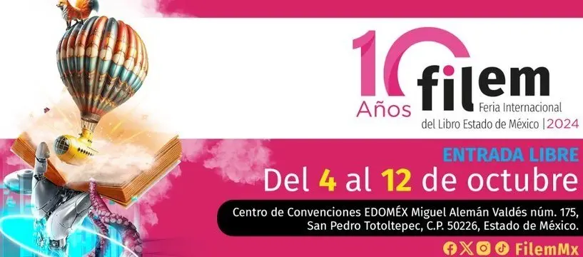 TOLUCA, Estado de México.- La Décima Edición de la Feria Internacional del Libro Estado de México 2024 se llevará a cabo del 04 al 12 de octubre en el Centro de Convenciones Estado de México.