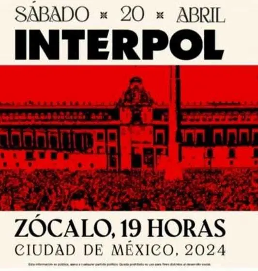 CIUDAD DE MÉXICO.- El Jefe de Gobierno de la Ciudad de México, Martí Batres, anunció que la banda de rock estadounidense, Interpol, se presentará en el zócalo capitalino, el próximo 20 de abril de 2024, a las 19:00 horas.