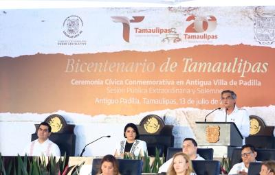 'Desde entonces han transcurrido 200 años que han sido testigos de muchas generaciones de hombres y mujeres que con su talento, esfuerzo, valor y profundo amor por Tamaulipas lograron solventar invasiones, pérdidas del territorio, conflictos nacionales y locales en donde, con vocación nacionalista, en esta última trinchera al noreste del territorio nacional siempre defendieron la patria de todos los mexicanos, demostrando el carácter firme pero también conciliador y noble de las y los tamaulipecos',