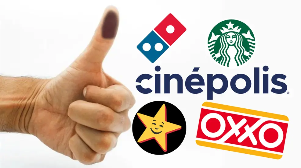 En el contexto de las elecciones más grandes de la historia de México, estas promociones se podrán canjear mostrando la marca de tinta en el dedo pulgar, impuesta por los funcionarios de casilla, en los siguientes establecimientos: