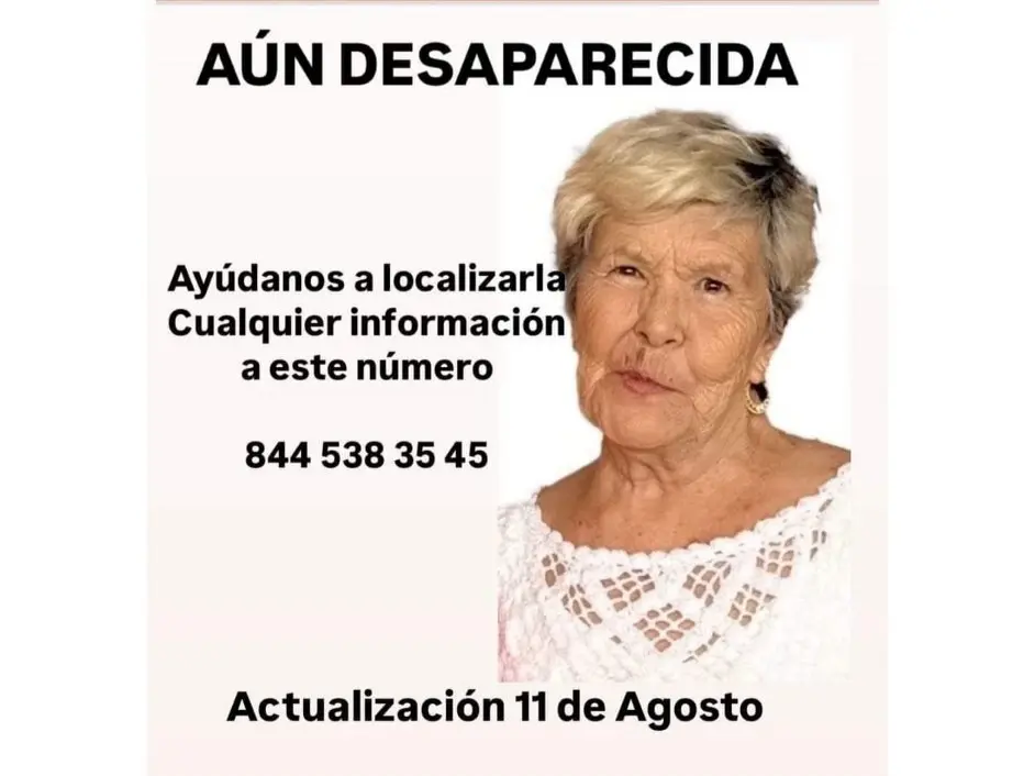 La mujer de 78 años desapareció el miércoles 07 de agosto y hasta ahora no ha sido localizada.