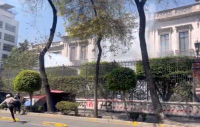 No obstante, como parte de estas movilización, poco después de las 12 en las oficinas de la Secretaría de Gobernación, manifestantes lanzaron cohetones al interior. Se ha registrado que, tan solo tres de ellos explotaron, mientras que otros quedaron en el patio.