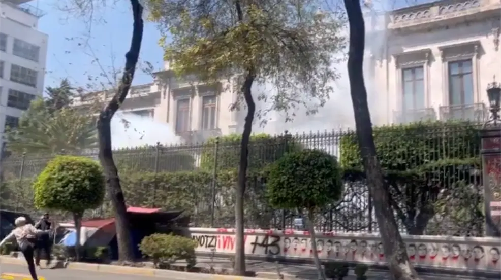 Continúan movilizaciones por Ayotzinapa: Cohetones en Segob y plantón en Zócalo