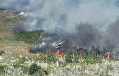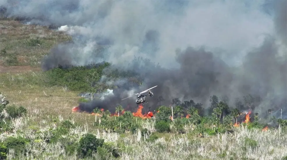 Control del incendio en la carretera de Sisal con helicóptero Bell-429