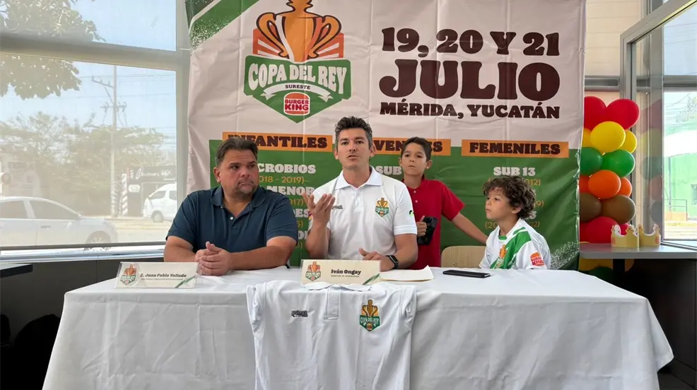 MÉRIDA, Yucatán.- La empresa Burger King presentó en rueda de prensa la Copa del Rey de fútbol. Este evento tendrá lugar en el Complejo Deportivo Kukulcán al oriente de la ciudad del 18 al 21 de julio, con hasta 120 equipos de diferentes partes de México con el fin de generar unión familiar y colaboración deportiva entre los padres e hijos que se inscriban a este torneo.