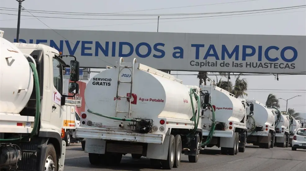 CIUDAD VICTORIA, Tamaulipas.- El gobernador Américo Villarreal Anaya ha instruido a la Secretaría de Recursos Hidráulicos para el Desarrollo Social a enviar camiones cisterna con una capacidad de 20 mil litros cada uno a los municipios de Tampico, Madero y Altamira, en respuesta a la crisis hídrica que afecta a la región sur de Tamaulipas.