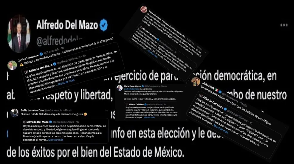 En redes sociales, Alfredo del Mazo publicó un mensaje donde reconoció que Morena y Delfina Gómez triunfaron en el Estado de México, ante esto, cientos de internautas empezaron a criticar al actual Gobernador.