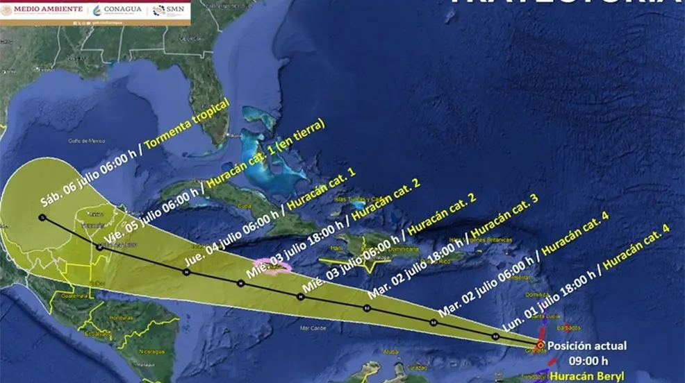 ¿Cuál es la trayectoria del huracán 'Beryl' y cuándo impactará a México?