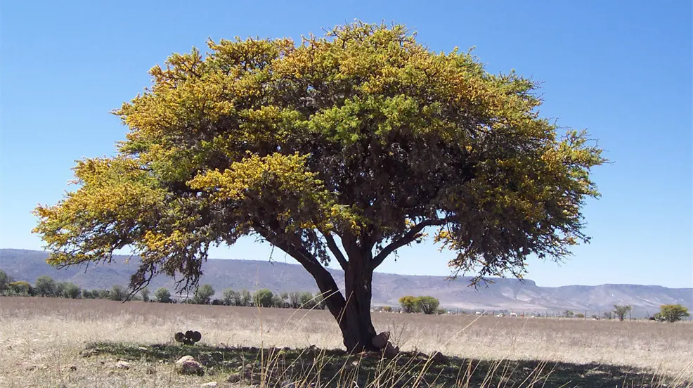 - Mezquite (Prosopis glandulifera): Este árbol de hoja caduca es otro árbol muy común en Saltillo. Puede crecer hasta 15 metros de altura y tiene una copa extendida que proporciona mucha sombra. El mezquite es una buena fuente de alimento para la vida silvestre y también se puede usar para hacer leña y carbón.