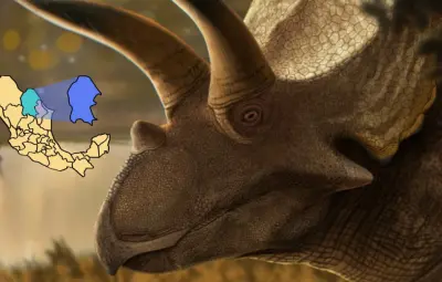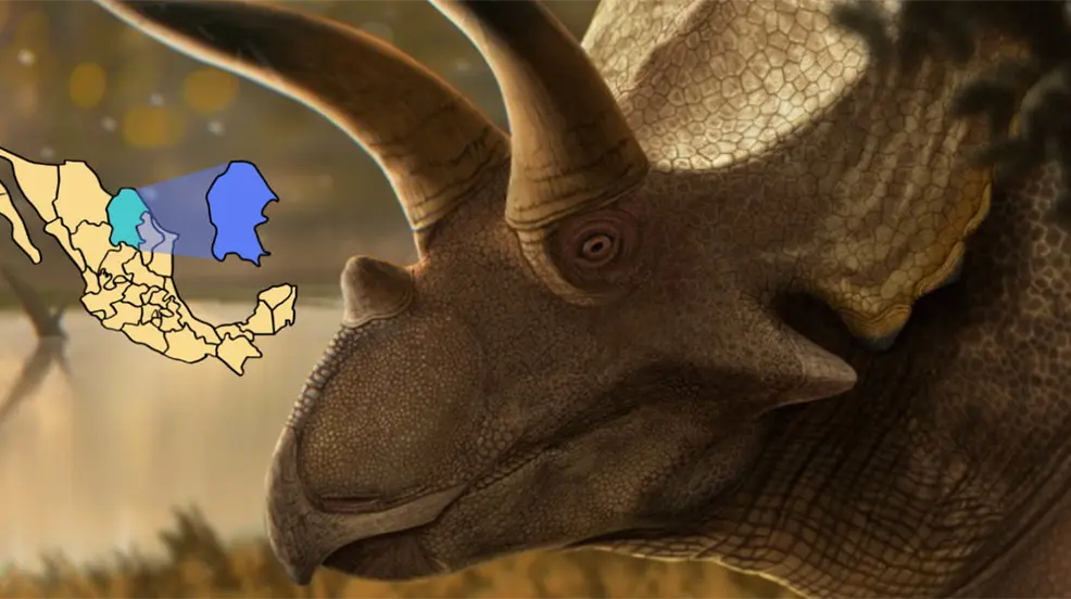 El Coahuilaceratops es uno de los dinosaurios más emblemáticos encontrados en la región. Descubierto en 2008, su nombre hace honor al estado de Coahuila y se traduce como "cara con cuernos grande de Coahuila" . Este dinosaurio herbívoro, que vivió hace aproximadamente 72 millones de años durante el período Cretácico tardío, es conocido por sus grandes cuernos sobre los ojos y su impresionante frill (volante óseo en la parte trasera de la cabeza) .