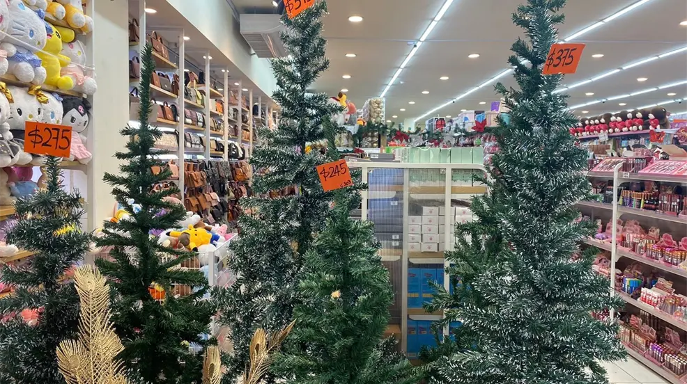 Las tiendas chinas abundan en la capital del estado y en Navidad han sacado sus productos para competir en precios a la hora de poner el pinito navideño.