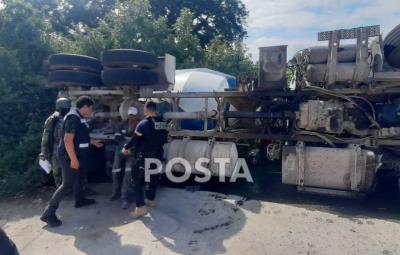 El incidente ocurrió en la localidad de El Carrizo cuando José Luis Núñez Nava, de 57 años y originario de Durango, perdió el control de una revolvedora a causa de la gravilla suelta enla carretera.