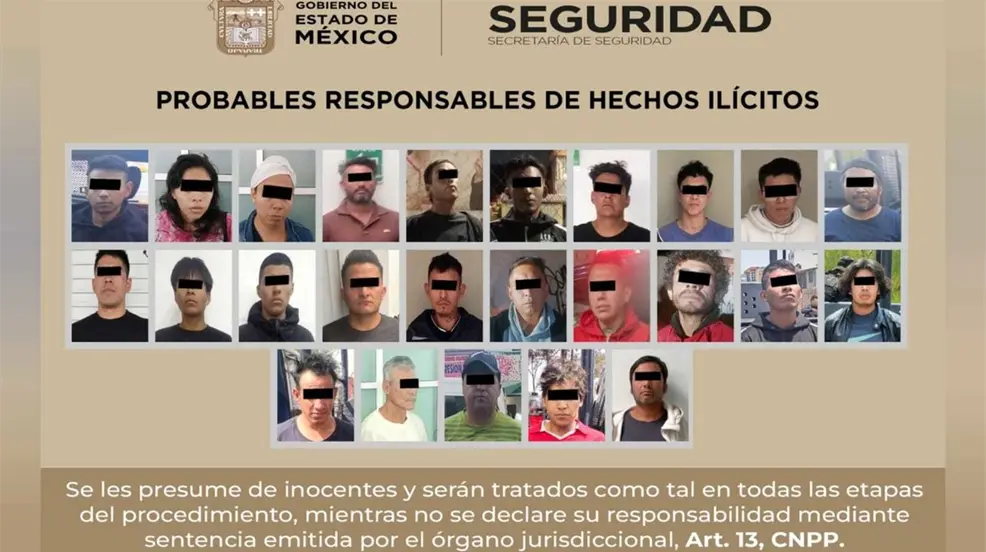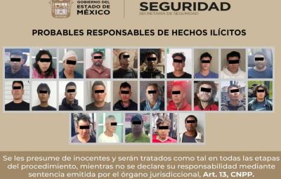 CUAUTITLÁN IZCALLI, Estado de México.- En una acción conjunta entre la Secretaría de Seguridad del Estado de México (SSEM), la Secretaría de la Defensa Nacional (SEDENA), la Guardia Nacional (GN), la Fiscalía General de Justicia del Estado de México (FGJEM), la Secretaría de Movilidad (SEMOV), el Instituto de Verificación Administrativa del Estado de México (INVEA), y la Policía Local, se logró la detención de 27 personas en Cuautitlán Izcalli por la comisión de diversos delitos.