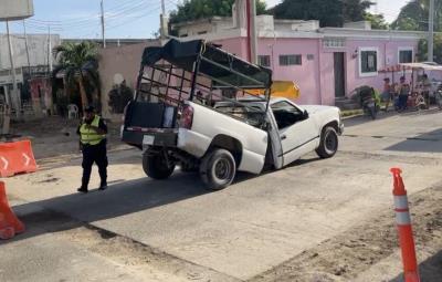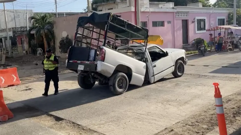 PROGRESO, Yucatán.- Curioso accidente se registró la mañana de este jueves luego de que una camioneta se partiera a la mitad al circular por las calles del puerto de Progreso.
