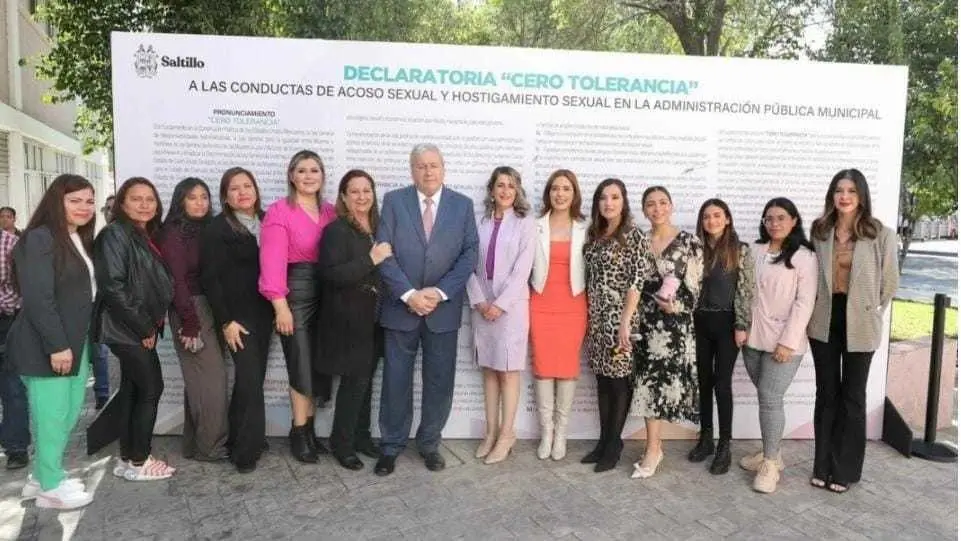 SALTILLO, Coahuila.- Acompañado por los titulares de las direcciones municipales, el alcalde de Saltillo, José María Fraustro Siller se sumó a la declaratoria “Cero Tolerancia” a las conductas de acoso y hostigamiento sexual.
