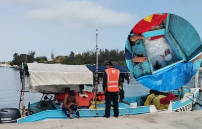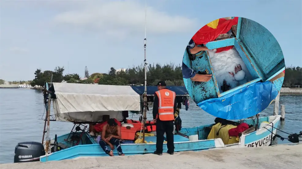 PROGRESO, Yucatán.- La Secretaría de Marina en colaboración con la Comisión Nacional de Acuacultura y Pesca (Conapesca) lograron la retención de producto marino y artes de pesca en el puerto de abrigo de Yucalpetén.