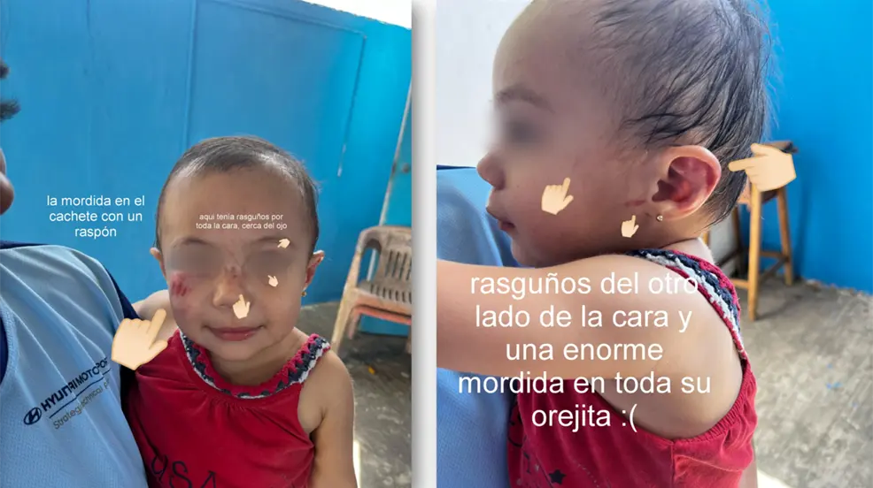 La pequeña, necesitada de un ambiente seguro mientras sus padres trabajaban, fue víctima de un ataque por parte de otra niña, aparentemente mayor, que le causó lesiones importantes. Según el relato de García, su hija sufrió traumas superficiales, incluyendo una significativa mordida en la oreja que pudo haber resultado en ruptura de cartílago, además de una inflamación considerable que casi le cierra el ojo.