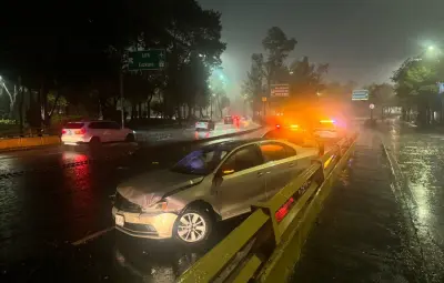 CUAUHTÉMOC, Ciudad de México.- La falta de pericia, el exceso de velocidad y la intensa lluvia que caía la mañana de este jueves 18 de julio, fue la mezcla perfecta para que un automovilista perdiera el control de su vehículo y terminara chocando contra un muro de concreto. El accidente ocurrió sobre carriles centrales de Circuito Interior a la altura de la incorporación a la avenida de los Insurgentes Norte, en la colonia Peralvillo de la alcaldía Cuauhtémoc.