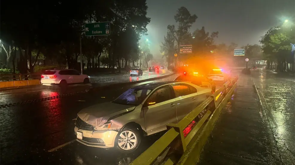 Cuatro hombres viajaban abordo de un auto Jetta en color arena con placa de circulación PBL-27-84 del Estado de México, y al llegar al punto referido, el conductor perdió el control y terminó estrellándose en el camellón que divide los carriles centrales de los laterales con dirección hacia el Aeropuerto Internacional de la Ciudad de México (AICM).