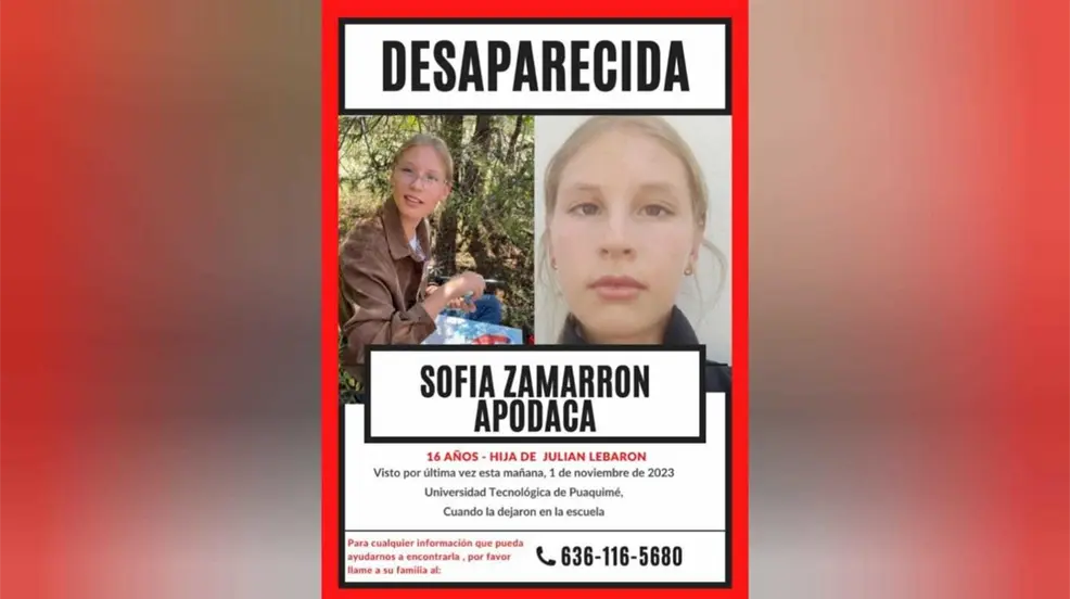Sofía Zamarrón de 16 años ingresó a la Universidad Tecnológica Puaquimé en el municipio de Casas Grandes y no se supo más de ella, el activista, Julián LeBarón, reportó el secuestro de su hija.