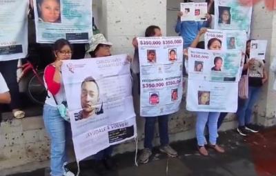Mujeres con pancartas de personas desaparecidas Foto: Especial