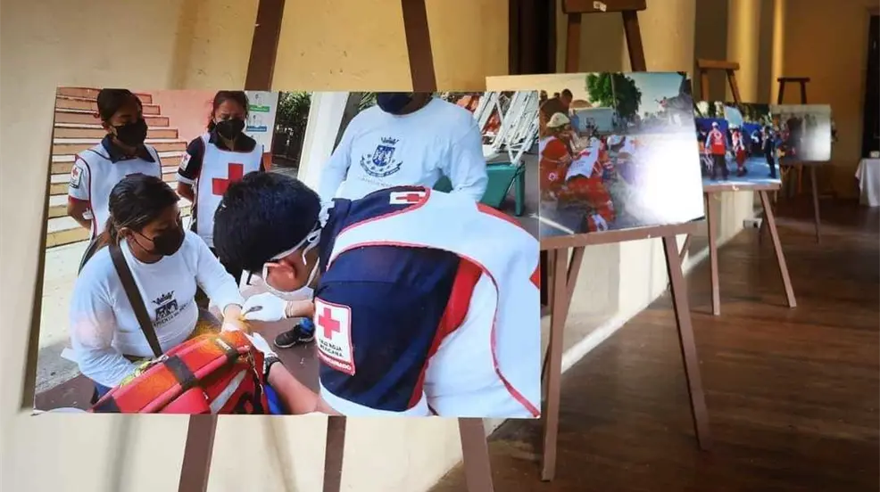 Con el apoyo del Ayuntamiento de Progreso y la Cruz Roja de México, delegación Yucatán, se realizó el montaje de la exposición con varias fotografías que muestran el trabajo de los paramédicos.