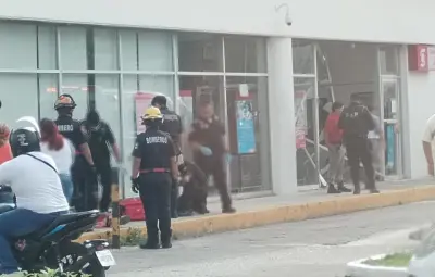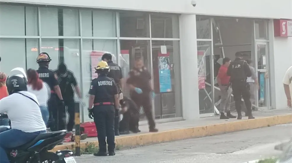 MÉRIDA, Yucatán.- El lunes por la tarde se registró un accidente en Plaza Las Américas, al poniente de Mérida, donde al menos dos personas resultaron lesionadas, cuando un joven se metió dentro de una sucursal bancaria Scotiabank, al intentar dar reversa.