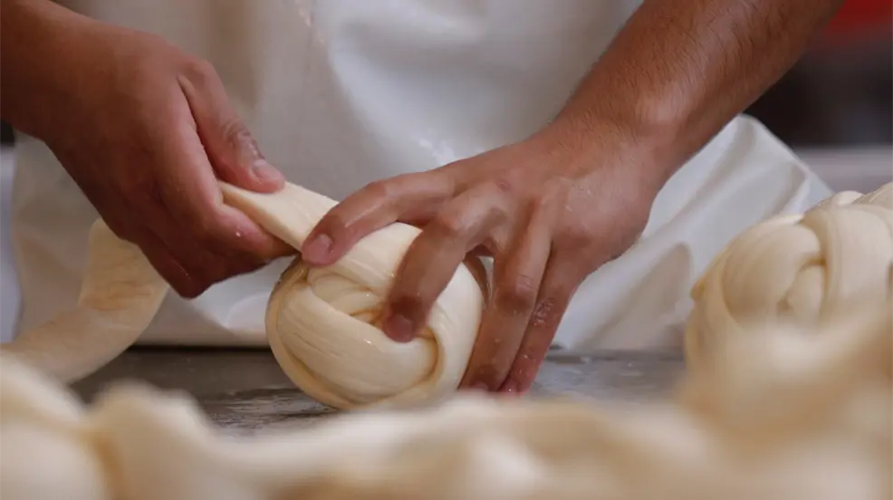 Para el queso oaxaca, la pasta cuajada se estira, se enfría y se moldea en tiras, mientras que el queso ranchero se muele, se sala y se moldea en su forma final.