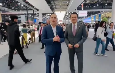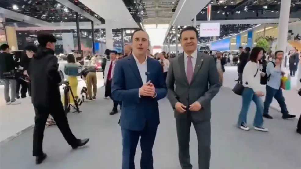 BEIJING, China.- El gobernador de Coahuila, Manolo Jiménez Salinas y su homólogo de Durango, Esteban Villegas Villarreal, coincidieron en Beijing, China, donde se encuentran promoviendo a las entidades y participaron en el Auto Show Beijing 2024.