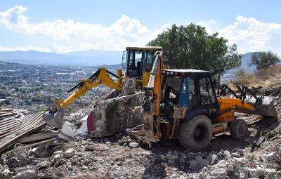 Además, se han destinado dos equipos de volteo para la remoción de escombros, tierra y piedras, y se están llevando a cabo trabajos de interconexión de la línea de agua potable existente y el mejoramiento del sistema de rebombeo, con el fin de restituir el caudal de manera eficiente.