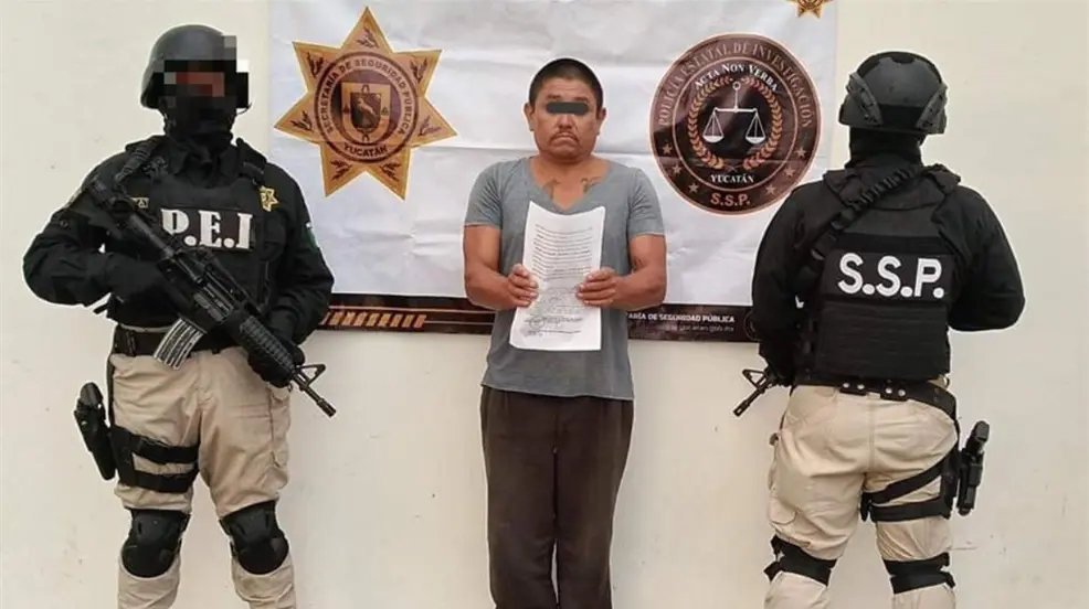 La detención fue realizada por elementos de la Policía Estatal de Investigación (PEI) en coordinación con la Fiscalía General del Estado (FGE) tras los hechos ocurridos en un predio del fraccionamiento Paseos del Mayab II del municipio de Kanasín.
