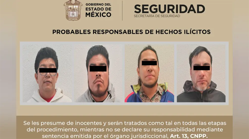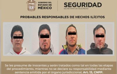 Los detenidos, identificados como Roberto 'N', de 27 años; José 'N', de 32; Hugo 'N', de 40; y Adrián 'N', de 35, fueron puestos a disposición de la autoridad correspondiente para determinar su situación jurídica, tras ser informados de sus derechos conforme a la ley.