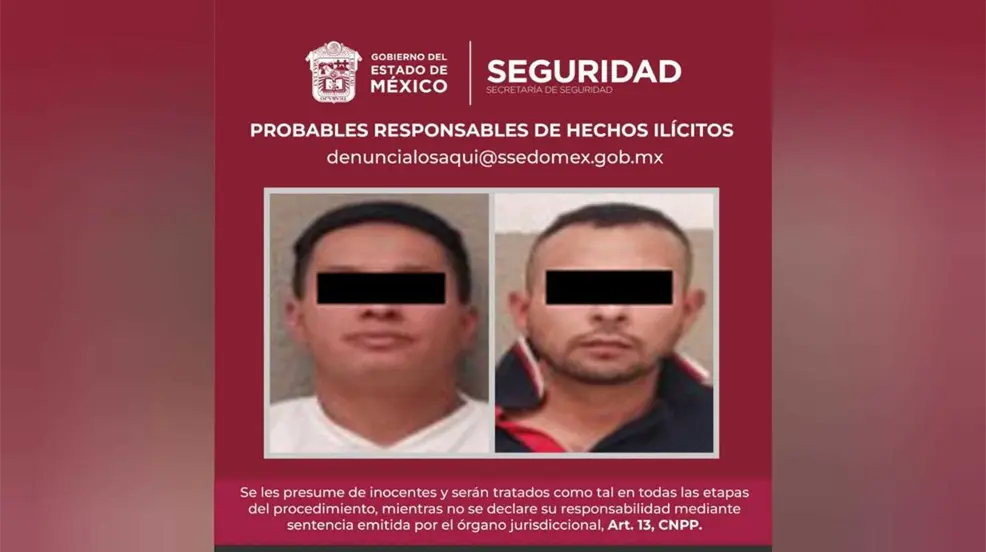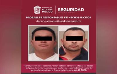 En un operativo coordinado entre elementos de la Secretaría de Seguridad del Estado de México, SSEM, y de sus homólogos de la Ciudad de México, lograron la detención de Luis "N" de 34 años y Fernando "N" de 37, quienes viajaban a bordo de un automóvil Aveo, color gris que, de acuerdo con las investigaciones de la Fiscalía General de Justicia mexiquense habría sido utilizado para cometer el atraco el pasado 4 de enero.