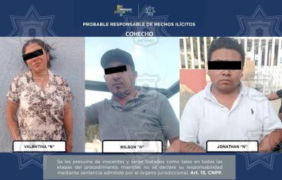 Los detenidos, identificados como Valentina N N de 23 años, Wilson N N de 37 años y Jonhatan N N, fueron puestos a disposición del Ministerio Público para las investigaciones correspondientes.