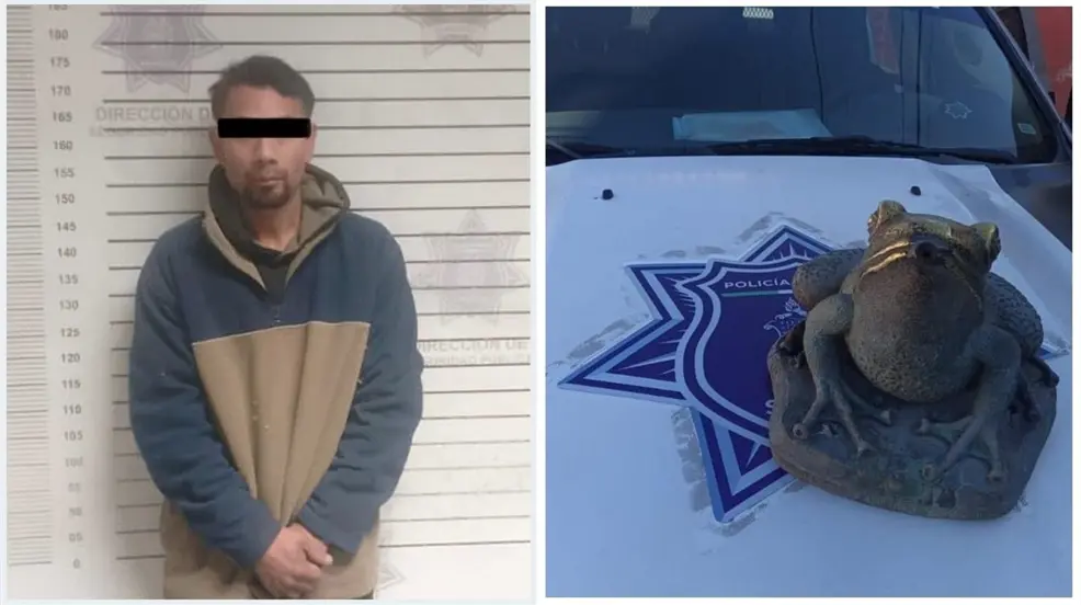 Detienen a sujeto en Saltillo por robar figura de rana de la Alameda Zaragoza