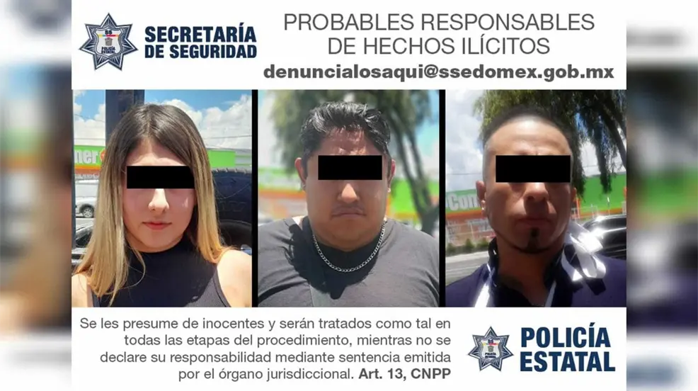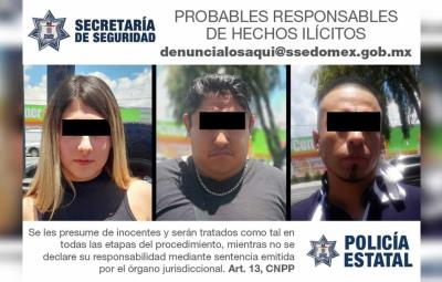 Presuntamente, Luis N, Roberto N y Esmeralda N forman parte de un grupo delictivo que operaba en Metepec, Toluca, San Mateo Atenco, Xonacatlán, Otzolotepec y Temoaya