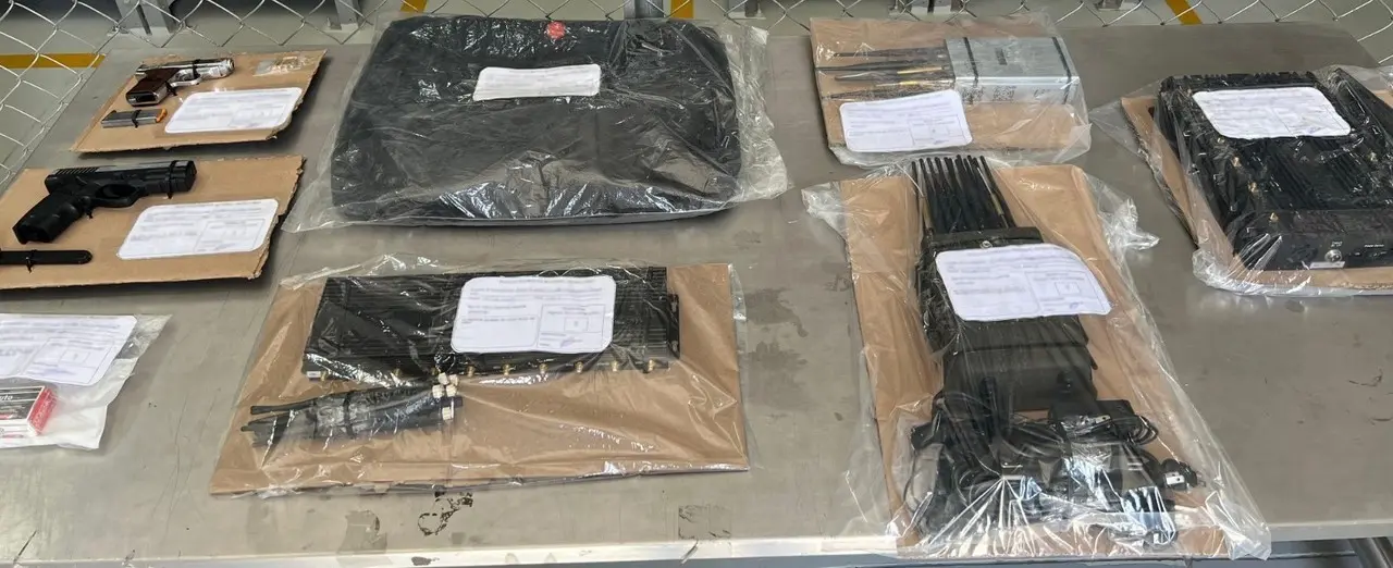 Uno de los individuos portaba un arma corta con cinco cartuchos útiles, además de una réplica de arma corta; en el interior de la unidad ubicaron dos inhibidores de señal y dos intercomunicadores, así como una caja de cartuchos útiles con 32 piezas calibre .32 mm, por lo que los tres sujetos fueron detenidos.