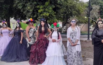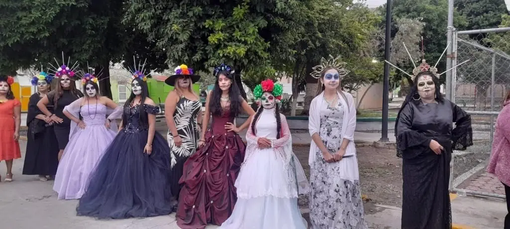 Se realizó una pasarela de catrinas protagonizada por las alumnas de los talleres de belleza y baile que asisten al centro comunitario de la colonia San Joaquín. El evento se realizó el martes por la tarde y contó con la participación de 90 alumnos.