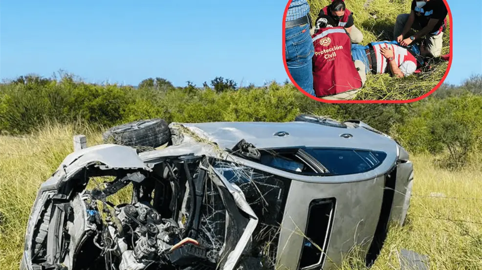 VILLA DE CASAS, Tamaulipas.- Un conductor de aproximadamente 50 años, identificado como Víctor David Cabrera Quintero, originario de Tampico y de oficio doctor, sufrió una volcadura en el kilómetro 38 de la carretera Ciudad Victoria-Soto La Marina.