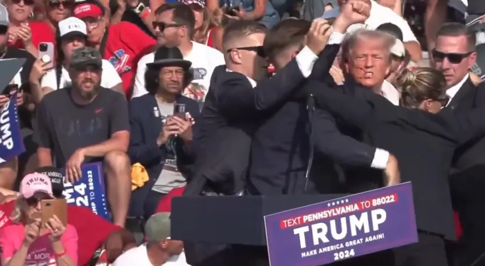 CIUDAD DE MÉXICO.- Este sábado Donald Trump, candidato a la presidencia de los Estados Unidos, fue victima de un atentado contra su vida mientras daba un discurso en Pensilvania, donde algunos minutos después de haber iniciado su mitin, el evento tuvo que cancelarse debido al atentado contra Trump.