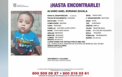 Se emitió una alerta de búsqueda para Álvaro Gael, un bebé de diez meses, visto por última vez en la colonia Ciudad Azteca.