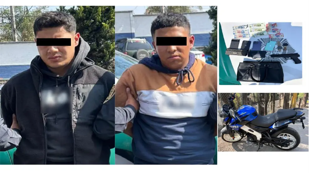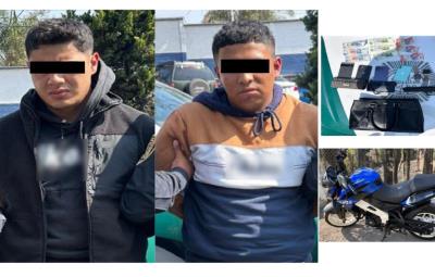 Fue en la avenida San Antonio, casi llegando a Alta Tensión, donde se les cerró el paso y tras una breve persecución a pie, ya que los responsables intentaron huir corriendo, ambos sospechosos fueron detenidos y sometidos a una revisión preventiva, durante la cual se les encontró en posesión de varios artículos robados, incluyendo cuatro teléfonos celulares, tres de ellos de alta gama, un reloj inteligente, un reloj de pulso, tres carteras con identificaciones y documentos personales, una réplica de arma de fuego y dinero en efectivo.