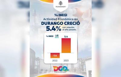 El resultado de este informe el año pasado, tuvo un resultado de números negativos ya que la cifra arrojada fue de -1.4 por ciento en actividad económica, y en relación a la cifra de este año el estado de Durango destacó con un crecimiento en actividad económica con un 5.4 por ciento, llevándolo a los cuatro mejores estados del país.