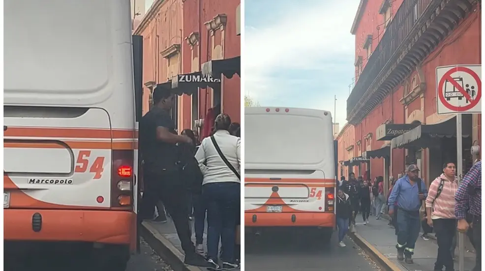 Y es que la calle Victoria, es una de las más angostas que atraviesa por el centro histórico, lo cual genera en esta parte que varios vehículos se queden esperando que el camión baje o suba pasajeros.