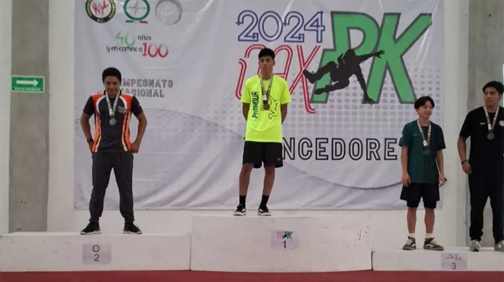 DURANGO, Durango. - Aarón Amaya es un joven duranguense que practica Parkour, teniendo un gran desempeño en competencias a nivel estatal y nacional, mismo que le ha valido ganarse el boleto al mundial de Parkour en la que representará a México en la categoría juvenil.