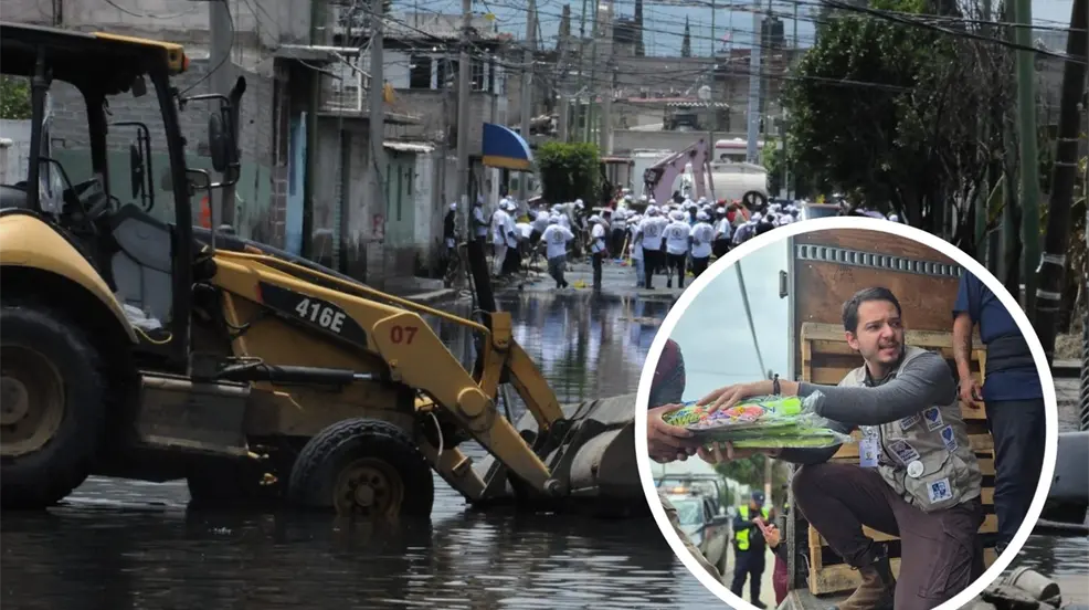 En medio de la contingencia, se han desplegado recursos humanos y maquinaria para desazolvar las calles inundadas de las colonias de Culturas de México y Jacalones.