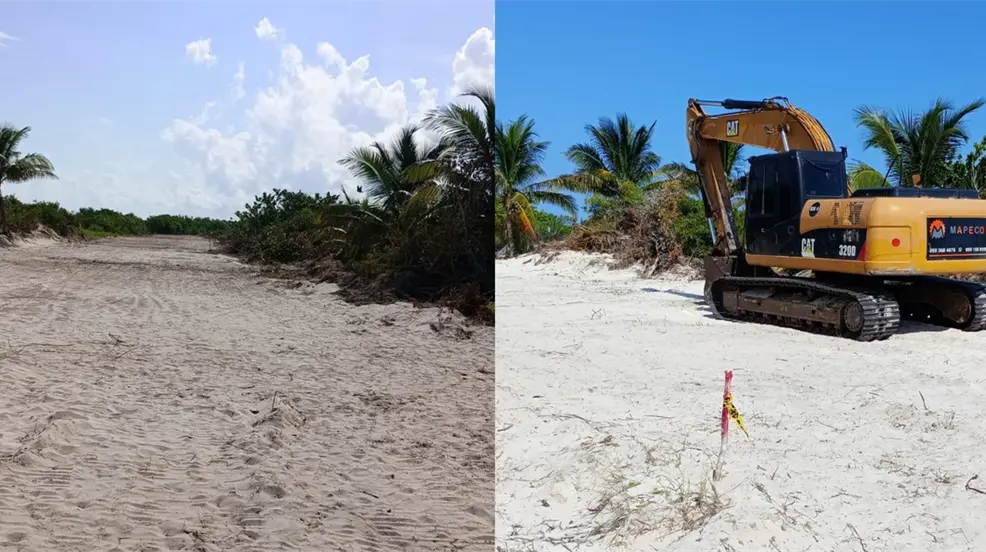A través de las redes sociales, habitantes del puerto de Dzilam de Bravo expusieron la presencia de maquinaria pesada en las dunas, lo que provocó la afectación de entre 500 y 700 metros de estas formaciones, lo que derivó en la intervención de los elementos de la policía municipal.