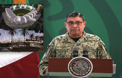 MÉRIDA, Yucatán.- Durante la conferencia de prensa matutina de este miércoles 3 de enero, el general Luis Cresencio Sandoval González, secretario de la Defensa Nacional (Sedena), anunció que el Ejército Mexicano liderará la remodelación del estadio de béisbol 'Kukulcán' en Mérida, Yucatán. Ante la presencia del presidente López Obrador, el general secretario detalló que el estadio será capaz de albergar a 16,537 aficionados.