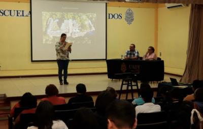 El evento se realizó en el auditorio “Ingeniera Elsy Yolanda Lara Barrera” de la Escuela Preparatoria número Dos donde los arqueólogos Víctor Castillo Borges y Leticia Vargas de la Peña hablaron sobre su trabajo en la zona y los avances significativos en su restauración y conservación.