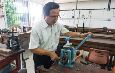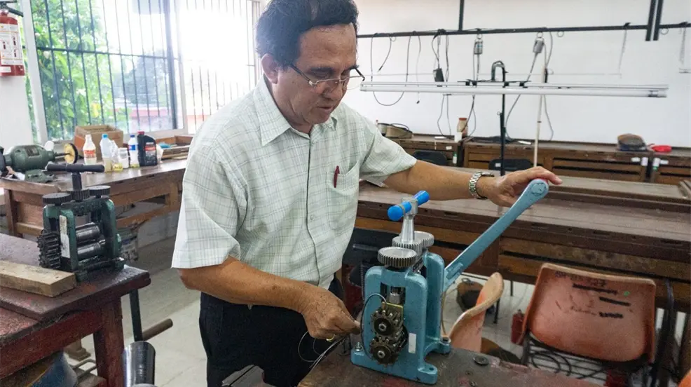 MÉRIDA, Yucatán.- Santiago Chablé Serrano cumple 40 años en la orfebrería, 40 años labrando piezas, pero también transmitiendo el conocimiento a cientos de estudiantes que han pasado por su taller en la Escuela de Artes y Oficios “Luciana Kan viuda de Luna”, de la Secretaría de Educación del Gobierno del Estado de Yucatán (Segey).